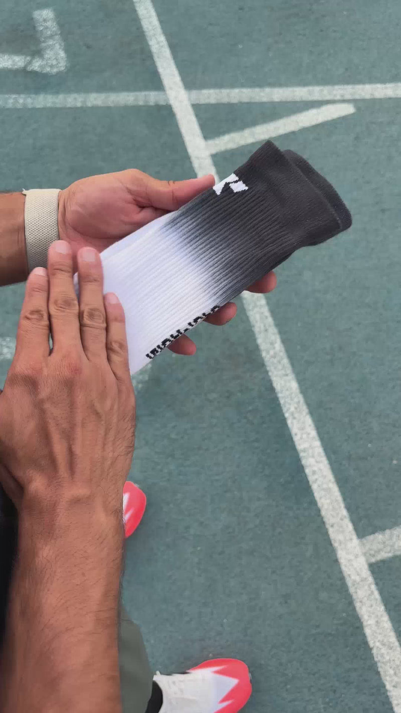 Our socks are made from a high-performance blend of moisture-wicking nylon, flexible spandex, and strategic cushioning zones for ultimate comfort. Designed to keep your feet dry, blister-free, and supported—whether you're running marathons or training hard.
