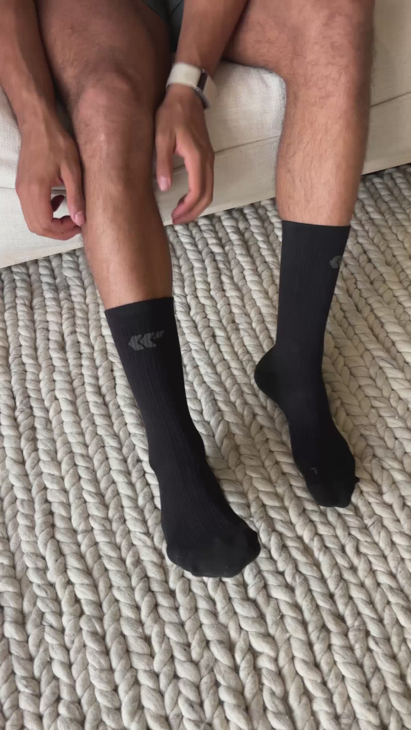 Reduces lower-leg stress from impact, standing, and repetitive movement.Built for people who move a lot - runners, Hyrox athletes, padel players, nurses, founders, and anyone on their feet all day.